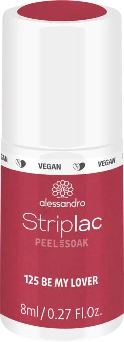 Striplac Peel or Soak van Alessandro is een innovatie in de nagelcosmetica. Met slechts twee lagen, een laag kleurlak en een laag top coat, heb je in slechts een paar minuten een perfect glanzende gelmanicure die tot wel 3 weken houdt. Hoewel de gelmanicure zeer langhoudend is, is deze zonder moeite te verwijderen waar en wanneer je maar wilt. Je “peelt” of “soakt” deze er simpelweg af zonder restjes op de nagels achter te laten.