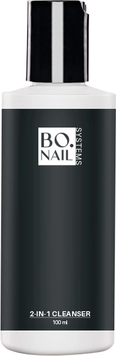 BO.NAIL BO.NAIL 2-in-1 Cleanser (100ml). De naam zegt het al – BO 2-in-1 Cleanser, deze cleanser is een essentiële natuurlijke reiniger voor het nageloppervlak. De tweede functie van de BO 2-in-1 Cleanser is dat het kan worden gebruikt om de plaklaag op gel nagels te verwijderen.. Productbeschrijving De naam zegt het al – BO 2-in-1 Cleanser. Deze cleanser is een essentiële natuurlijke reiniger voor het nageloppervlak. BO. 2-in-1Cleanser reinigt en dehydrateert tijdelijk de natuurlijke nagelplaat. Dit is zo belangrijk voor de voorbereidende procedures voor het aanbrengen van kunstnagels of nagellak omdat het de hechting verbetert en lifting vermindert. Verlengt de draagbaarheid van nagellakken. Verwijdert verontreinigingen van de nagelplaat. De tweede functie van de BO 2-in-1 Cleanser is dat het kan worden gebruikt om de plaklaag op gel nagels te verwijderen, waardoor een hoogglanzende afwerking achterblijft. Deze heerlijk geurende cleanser is een must have in de salon. Kenmerken & voordelen * Natuurlijke reiniger voor het nageloppervlak * Reinigt en dehydrateert * Verbetert de hechting en vermindert het loslaten van gel, acryl, fiberglass en nagellak * Verlengt de draagbaarheid van nagellak * Verwijdert de plaklaag op gelnagels * Heerlijke geur Gebruik Natuurlijke nagel voorbereiding: Verzadig een celstofdepper met BO. 2-in-1 Cleanser en wrijf over de hele nagelplaat om te reinigen en tijdelijk uit te drogen. Zorg ervoor dat u de nagel niet opnieuw verontreinigt vóór u het product aanbrengt. Plaklaag: Verzadig een gel sponsje met BO 2-in-1 Cleanser en wrijf lichtjes over het oppervlak van de uitgeharde gel nagel om de plaklaag te verwijderen. Gebruik voor elke nagel een nieuwe kant van het gelsponsje.