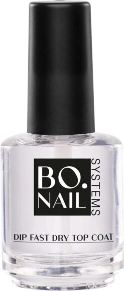 BO.NAIL BO.NAIL Dip Fast Dry Top Coat (15ml). BO. Dip Fast Dry Top Coat geeft uw BO. Dip nagels een hoogglans afwerking.. Productbeschrijving Dip Fast Dry Top Coat geeft uw BO. Dip nagels een hoogglans afwerking. Het is ook mogelijk om de BO. Dip Fast Dry Top Coat te gebruiken op nagellak, acryl en gel. Kenmerken & voordelen * Hoogglans afwerking * Luchtdrogend * Gemakkelijk te verwijderen * Geen vergeling * Geen lamp nodig Gebruik Dip Fast Dry Top Coat is geschikt voor al uw manicures. Buf alle krasjes weg me de BO. Sponge Buffer en breng een laagje BO. Dip Fast Dry Top Coat aan voor een perfecte hoogglans afwerking.