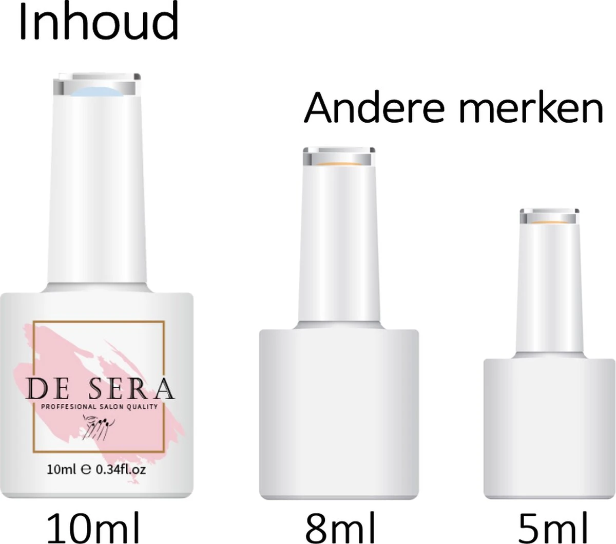 De Sera staat voor topkwaliteit. Want waarom zou je thuis geen salonkwaliteit gellak gebruiken? Alle gel nagellak van De Sera heeft heldere kleuren, een goede dekking en blijft zo’n twee weken zitten, wanneer het met een goede kwaliteit lamp wordt aangebracht. De kwaliteit van De Sera gellak is gegarandeerd. We bieden daarom een niet goed, geld terug garantie. Ben je niet tevreden? Stuur ons dan app of e-mail en we lossen het op.