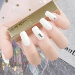 - Wacht 20 sec en verwijder de plastic mal (nagel tip) door deze van links naar rechts te bewegen.
