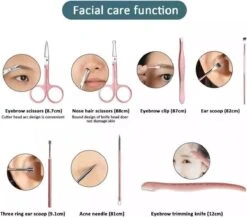 1 x Nagelknipper, Cuticle pusher, Nagelvijl, Nagelmes, eeltverwijderaar, Wenkbrauwschaar, Pincet, Spiraal om oorsmeer te verwijderen, nagelknipper (diagonale) en nagelknipper groot