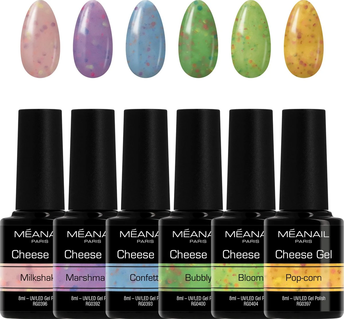 In deze mooie doos vind je 6 gellakjes van 8ml: Popcorn, Milkshake, Marshmallow, Confetti, Bubbly en Bloom. Zes gellakjes met confetti. Ons team van experts heeft een gellak samengesteld van salonkwaliteit zo geniet je ruim twee weken van perfecte nagels met een mooie glans. Voor nog meer speciale effecten ontdekt onze kits : Cat Eye, Shiny Star, Chameleon en Peel Off.