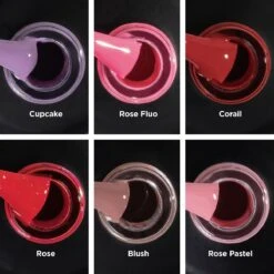 In deze mooie doos vind je 6 gellakjes van 8ml: Cupcake, Rose Fluo, Corail, Rose, Blush, Rose Pastel.