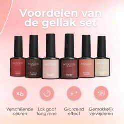 Omdat je met gellak kiest voor een lak die tot wel twee weken blijft zitten, wil je daar ook optimaal gebruik van maken. Het is dan wel zo praktisch om een kleur te kiezen die bij iedere gelegenheid en outfit past. Je draagt immers gedurende die twee weken niet elke dag hetzelfde type outfit. De kleuren in deze set zijn warm en neutraal waardoor ze perfect geschikt zijn voor ieder moment van de dag en iedere dag van de week. Deze set bevat 6 prachtige kleuren.