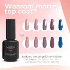 Voor een matte afwerking van je gellak gebruik je deze matte top coat. Heeft een super lange houdbaarheid op de nagels van wel 14 dagen en langer. Bestel direct voor een langere houdbaarheid van je gellak.