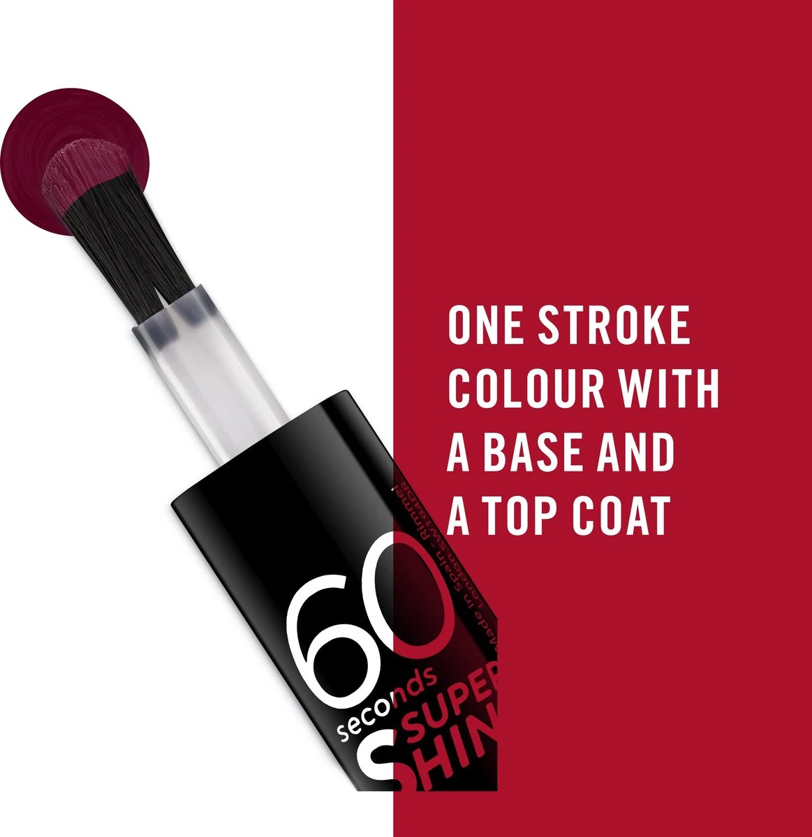Ontdek de Rimmel London 60 seconds Supershine nagellak. De 3-in-1 nagel kleur technologie met kleur in één laag, base coat en beschermende glanzende topcoat zorgt voor prachtig gekleurde en glanzende nagels na 1 minuut! Met het iets bredere en platte kwastje breng je in een laag de lak perfect aan. Dress to impress met handen en voeten die perfect bij de meest sexy looks van het seizoen passen. Lak ze strak, en go! Rimmel London staat voor zelf-expressie. Rimmel laat jou zijn wie jij bent. En net als London, staat Rimmel voor cool, onvoorspelbaar en edgy. Zelfexpressie zonder regels: wees jezelf, altijd echt en toegankelijk. Live the London Look!