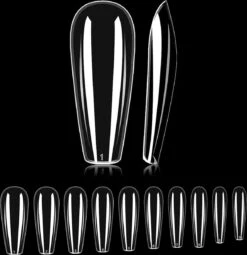 10 vaks Tipbox met 10 maten aan Full Cover Ballerina Tips (kleur: helder/clear)