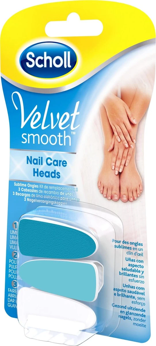 Navulverpakking voor het Velvet Smooth Elektrische Nagelverzorgingssysteem. Met de 3 verschillende vijlkoppen vijl je je nagels in vorm, polijst je zachtjes het oppervlak van je nagels en poets je ze tot dat ze de gewenste glans hebben bereikt. Voor gezond uitziende en glanzende nagels, zonder moeite.