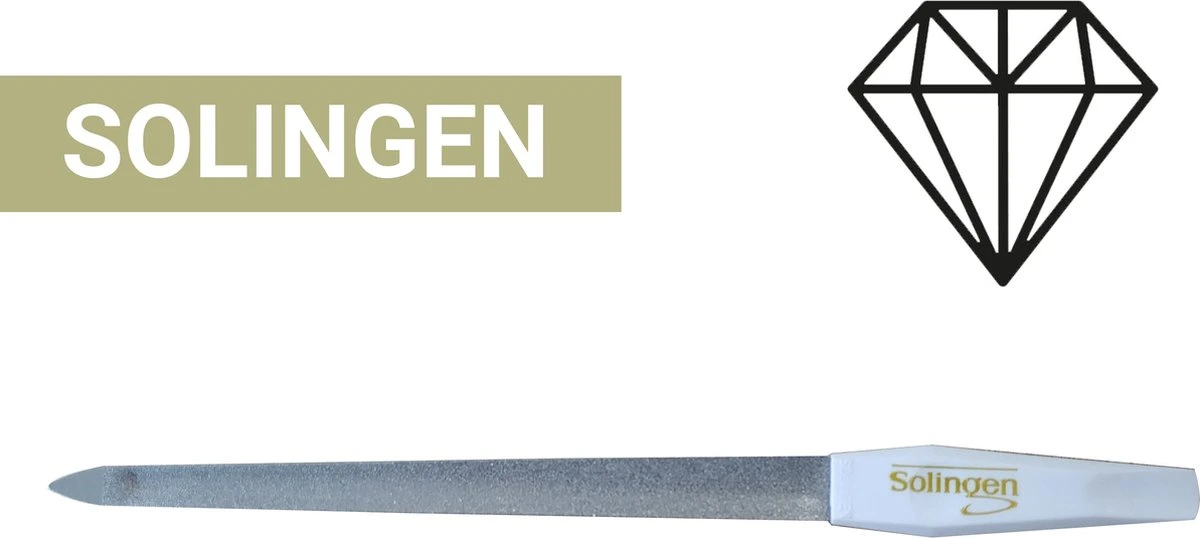 Deze Solingen Diamant Vijlen zijn gemaakt in Solingen ( Duitsland ) en voldoen aan de hoogste eisen die professionals stellen aan een Nagelvijl, kortom de beste kwaliteit voor de beste prijs.