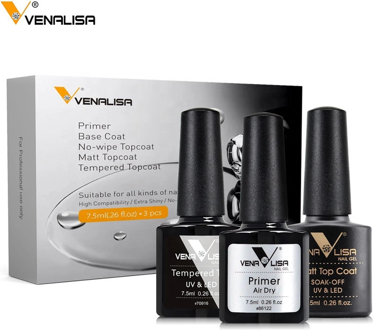 Venalisa – Base Coat, Primer & Top Coat – Gel Nagellak – Led/UV Gellak Set
